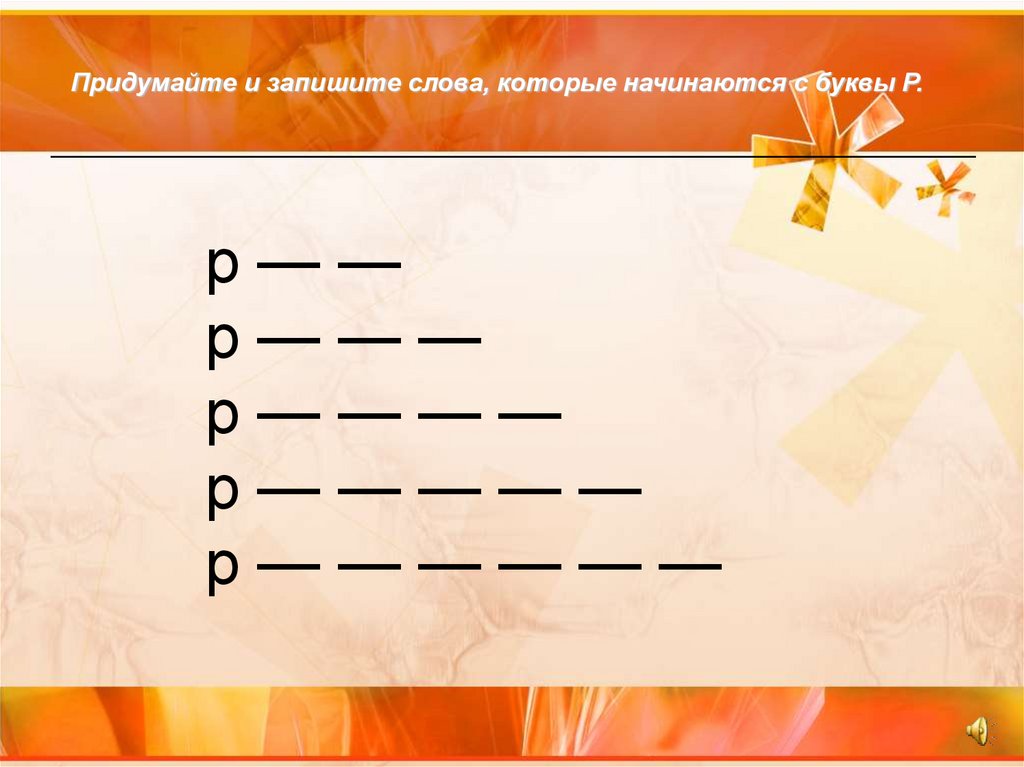 Придумайте и запишите слова, которые начинаются с буквы Р.р——