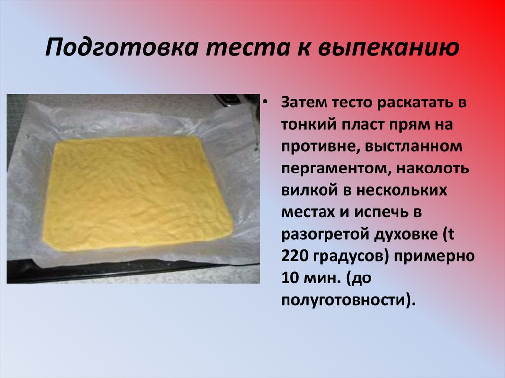 Подготовка теста к выпеканию• Затем тесто раскатать в