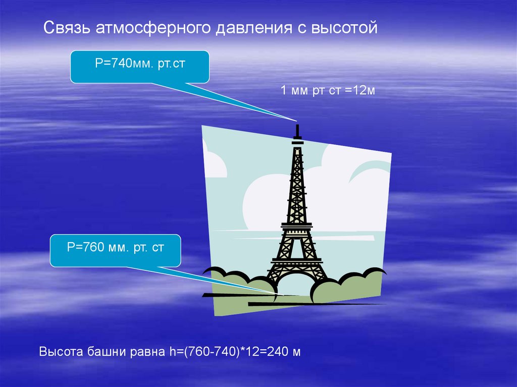 Связь атмосферного давления с высотойP=740мм. рт.ст