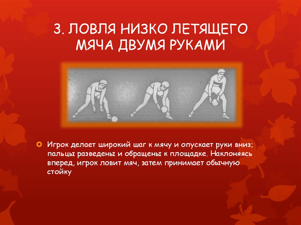 3. ЛОВЛЯ НИЗКО ЛЕТЯЩЕГОМЯЧА ДВУМЯ РУКАМИ