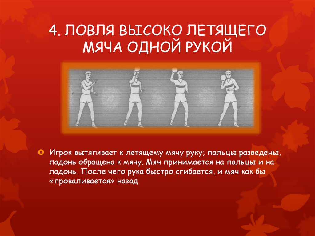 4. ЛОВЛЯ ВЫСОКО ЛЕТЯЩЕГОМЯЧА ОДНОЙ РУКОЙ
