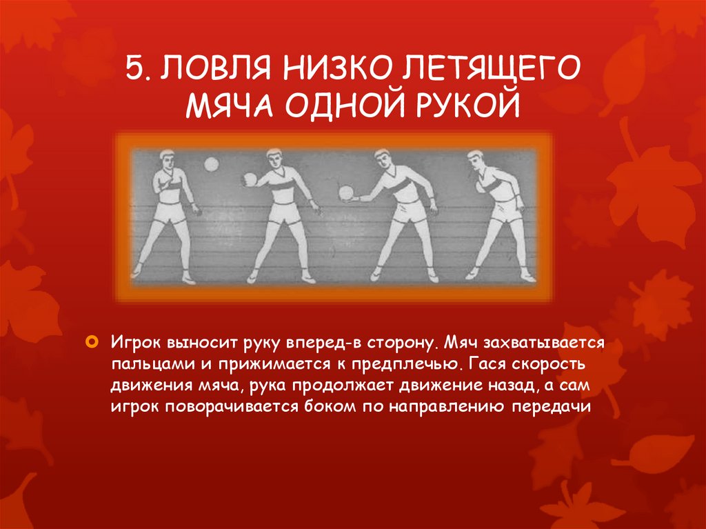 5. ЛОВЛЯ НИЗКО ЛЕТЯЩЕГОМЯЧА ОДНОЙ РУКОЙ