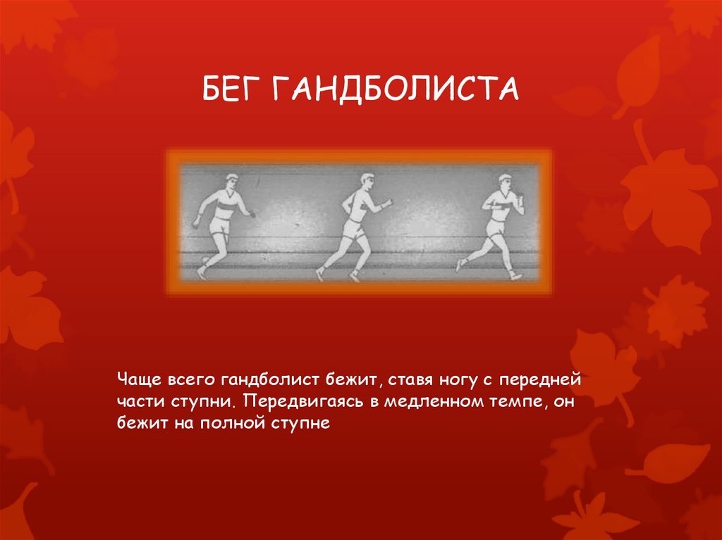 БЕГ ГАНДБОЛИСТАЧаще всего гандболист бежит, ставя ногу с передней