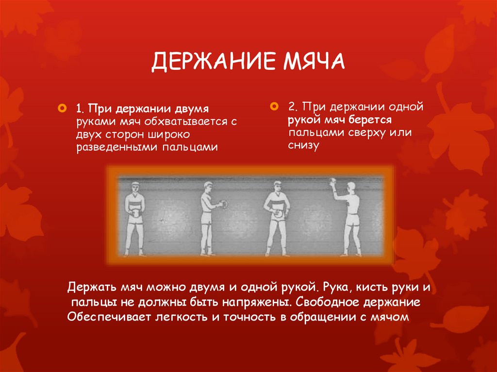 ДЕРЖАНИЕ МЯЧА1. При держании двумя