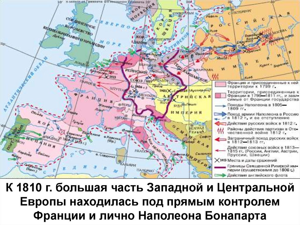 К 1810 г. большая часть Западной и ЦентральнойЕвропы находилась под прямым контролем