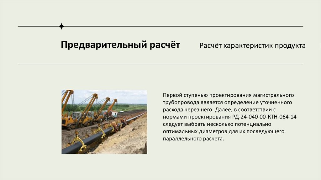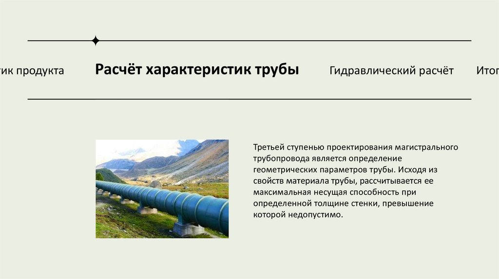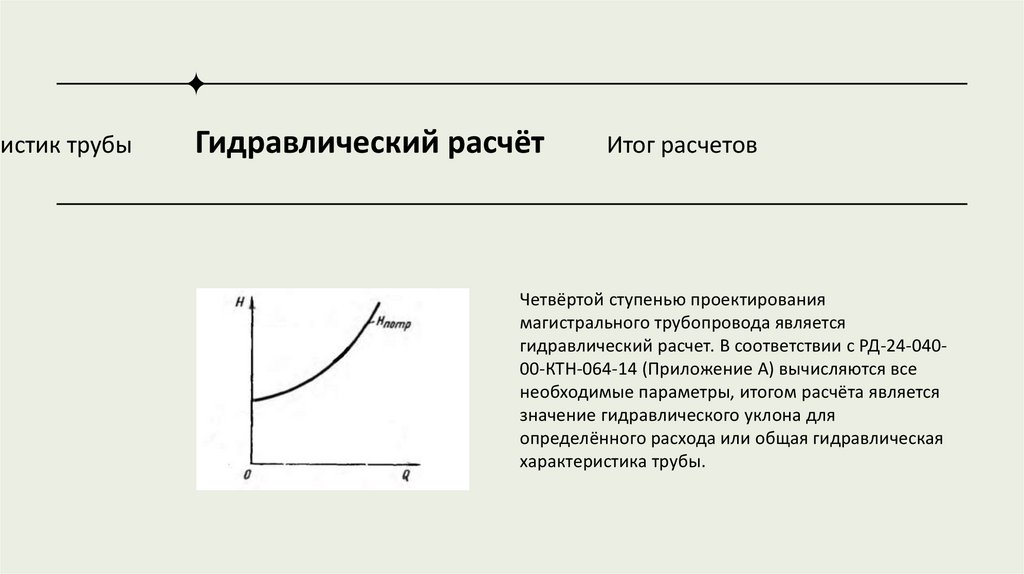 Второй ступенью проектирования магистральноготрубопровода является определение характеристик