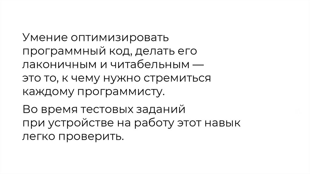 Умение оптимизироватьпрограммный код, делать его