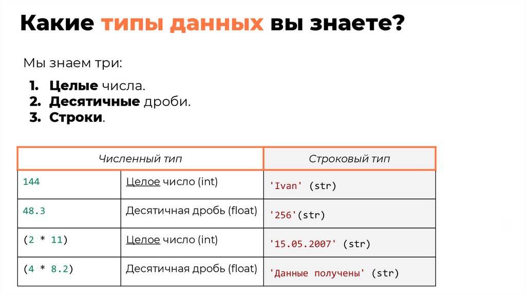 Какие типы данных вы знаете?Мы знаем три: