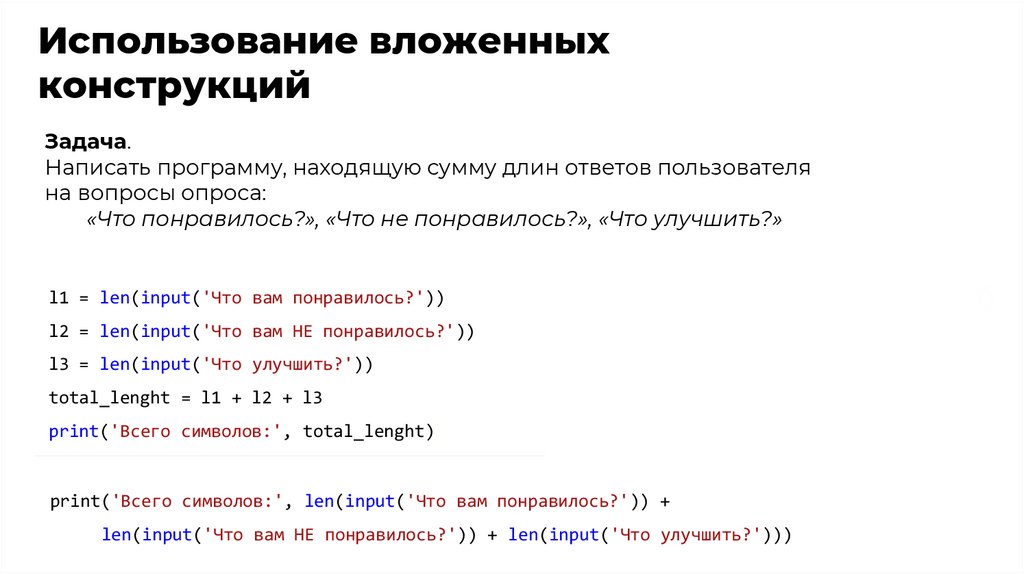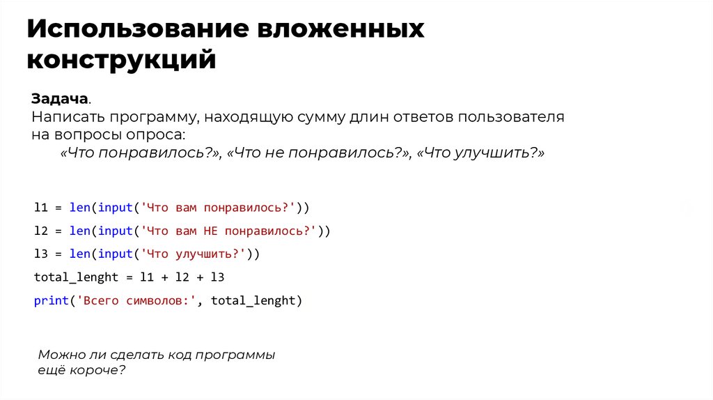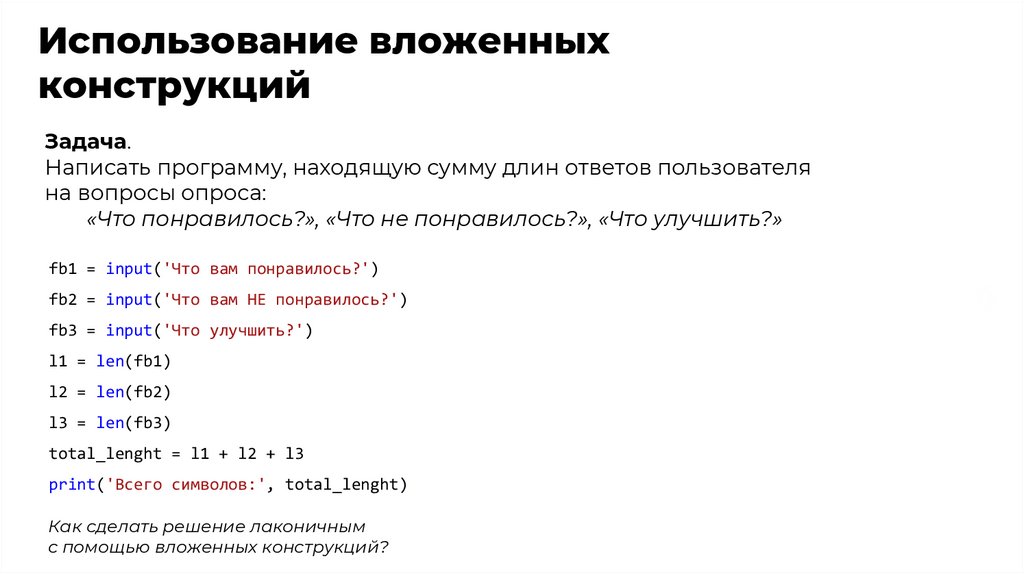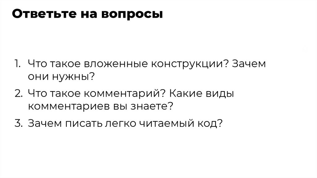 Ответьте на вопросы1. Что такое вложенные конструкции? Зачем