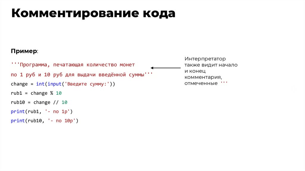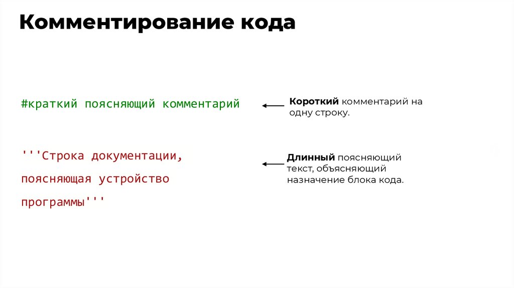 Комментирование кода#краткий поясняющий комментарий