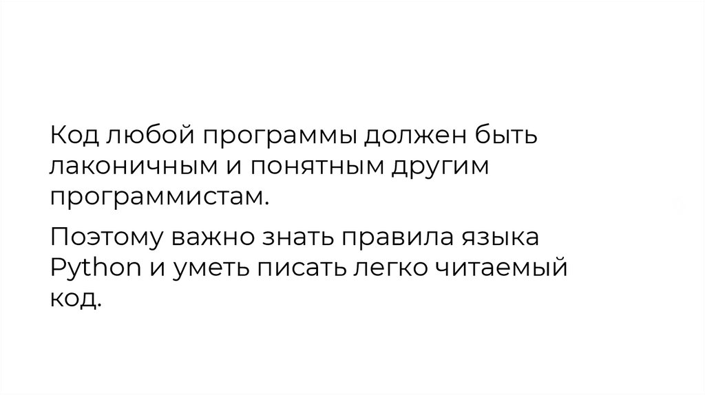 Код любой программы должен бытьлаконичным и понятным другим