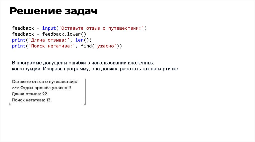 Решение задачfeedback = input('Оставьте отзыв о путешествии:')
