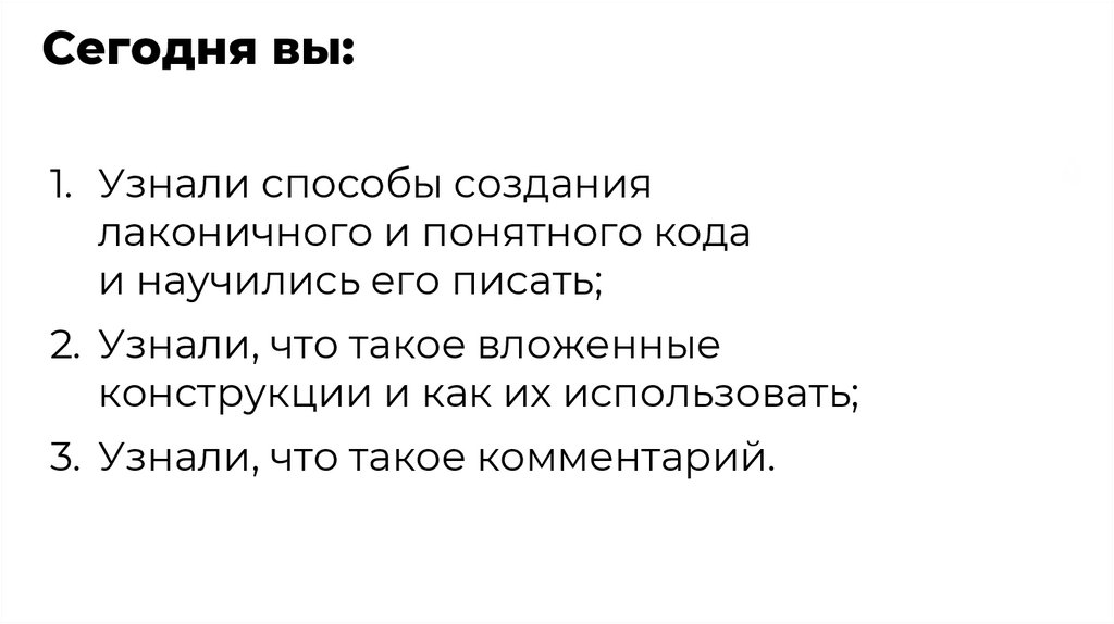 Сегодня вы:1. Узнали способы создания