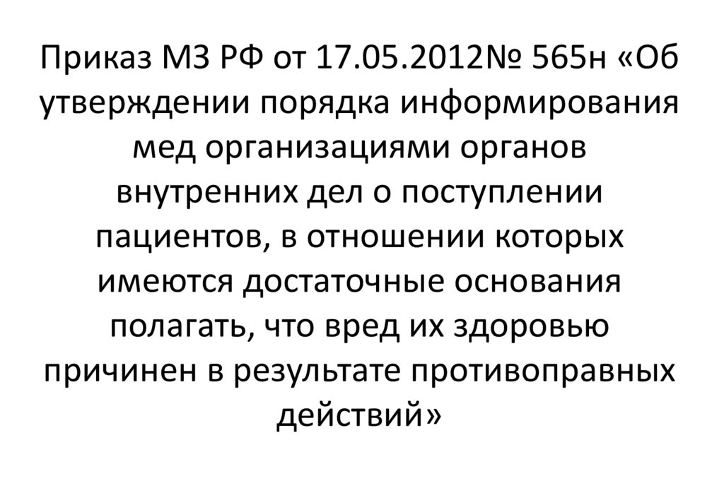 Приказ МЗ РФ от 17.05.2012№ 565н «Обутверждении порядка информирования