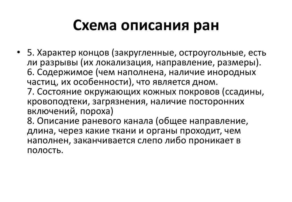 Схема описания ран• 5. Характер концов (закругленные, остроугольные, есть