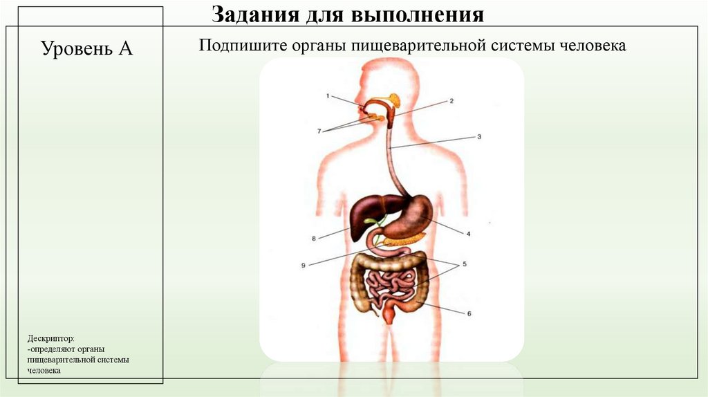 Цель для учащихся с ООП: определить органы пищеварения у человека
