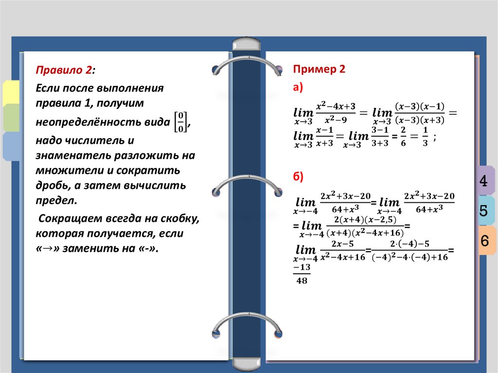 Правила вычисления пределов: