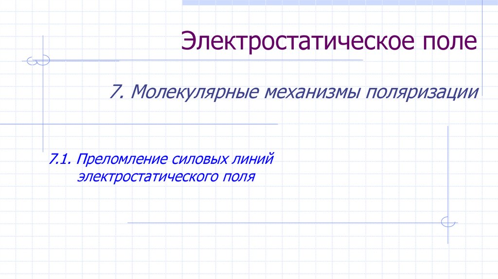 Электростатическое поле7. Молекулярные механизмы поляризации