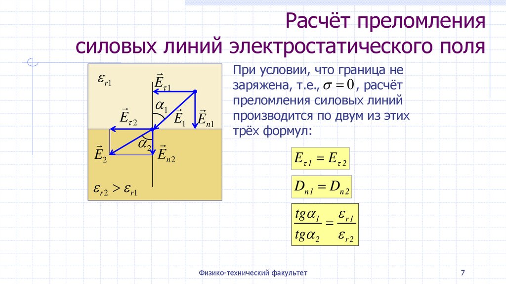 Электростатическое поле. Тема 7.1. Преломление силовых линий электростатического поля