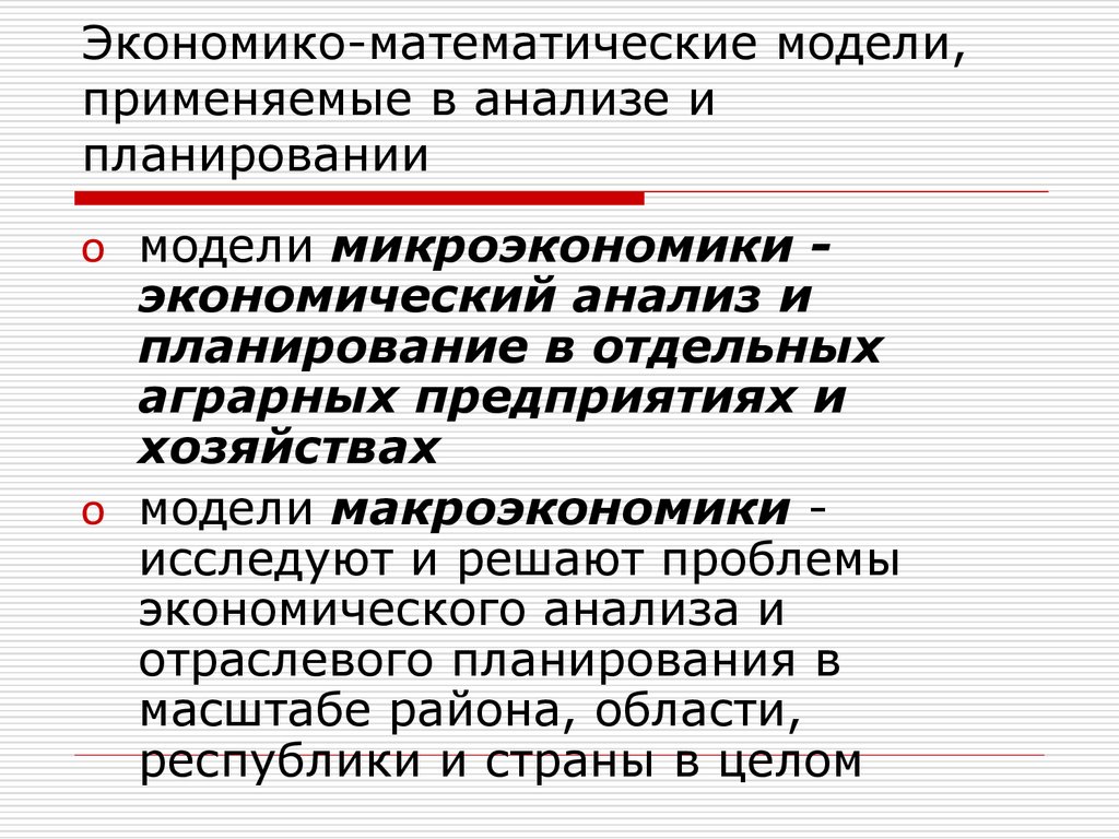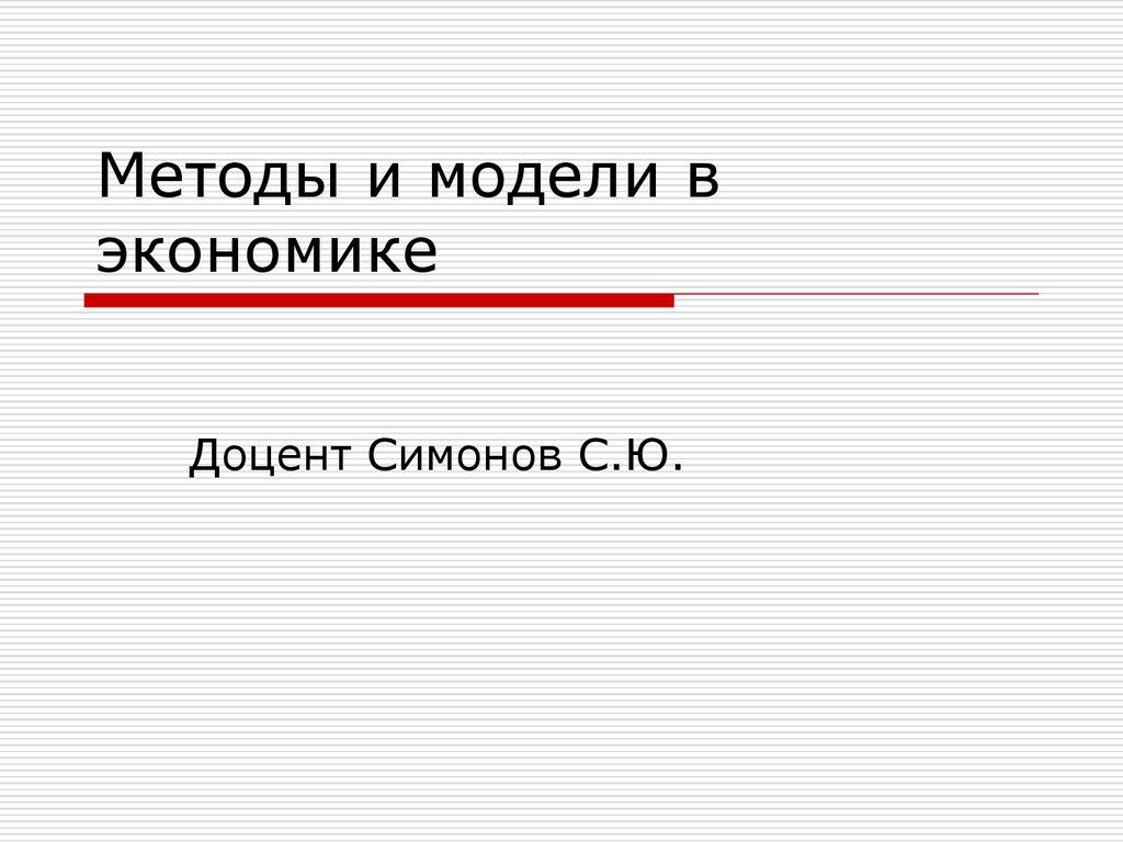 Методы и модели в экономике. Лекция 1. Общие сведения о дисциплине и модели растениеводства