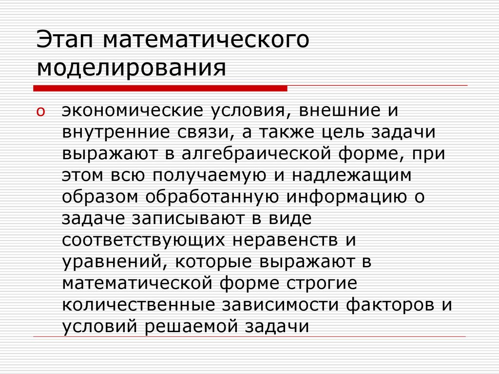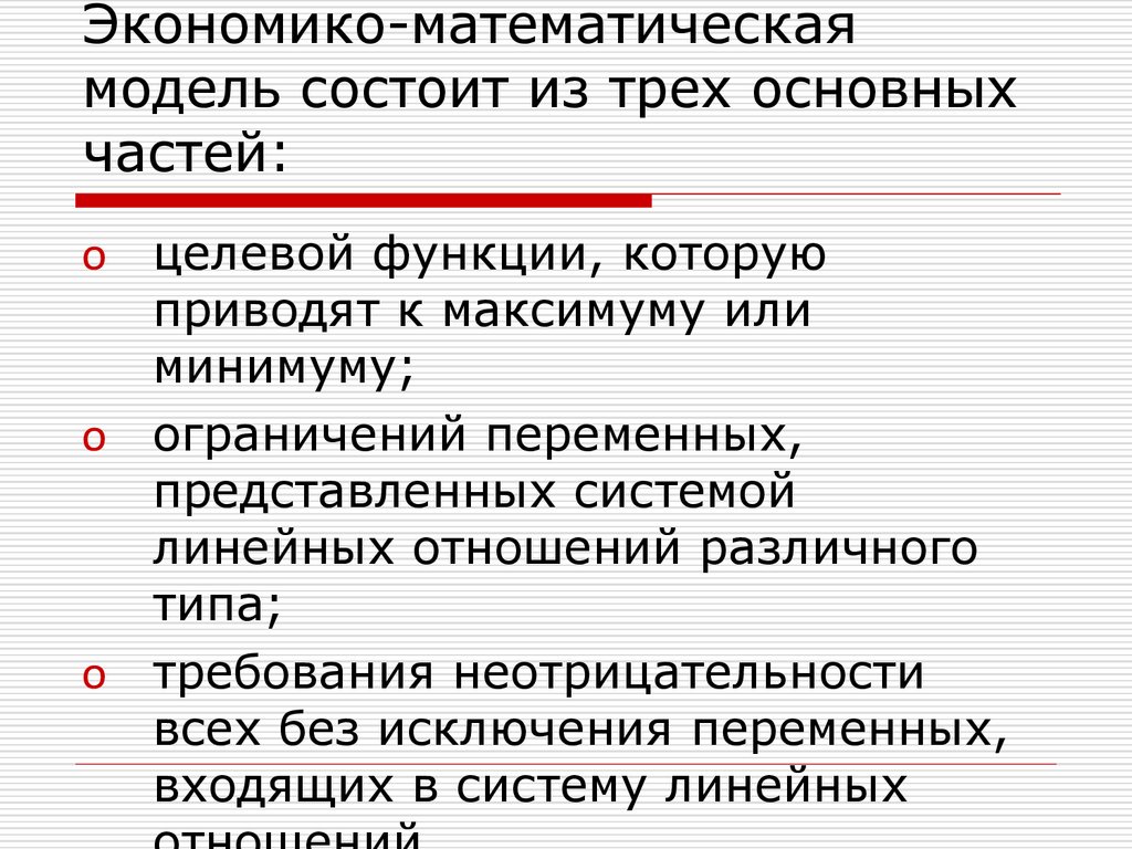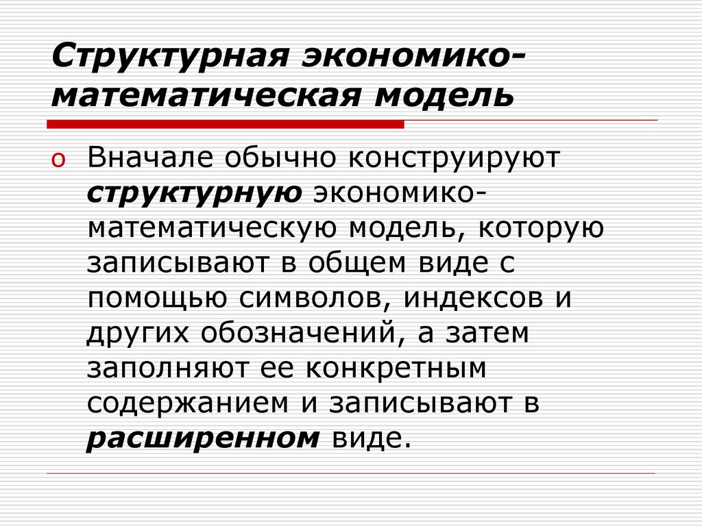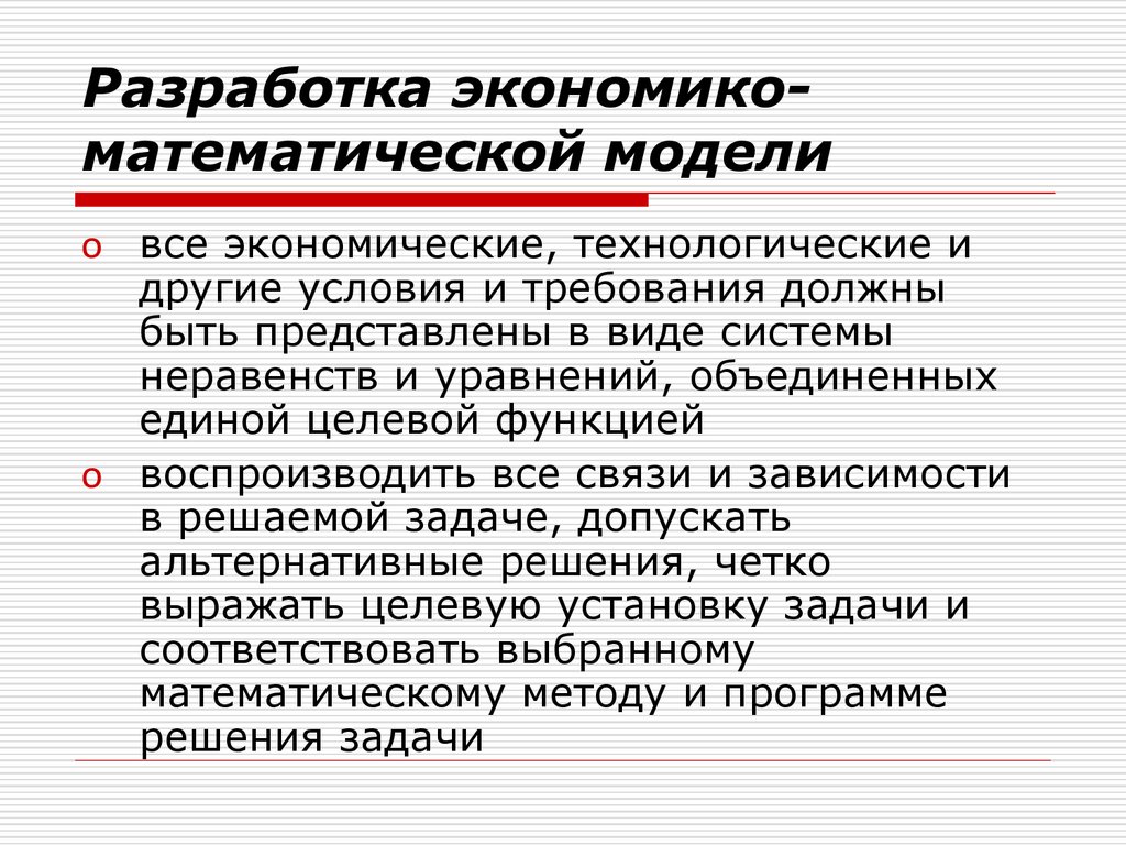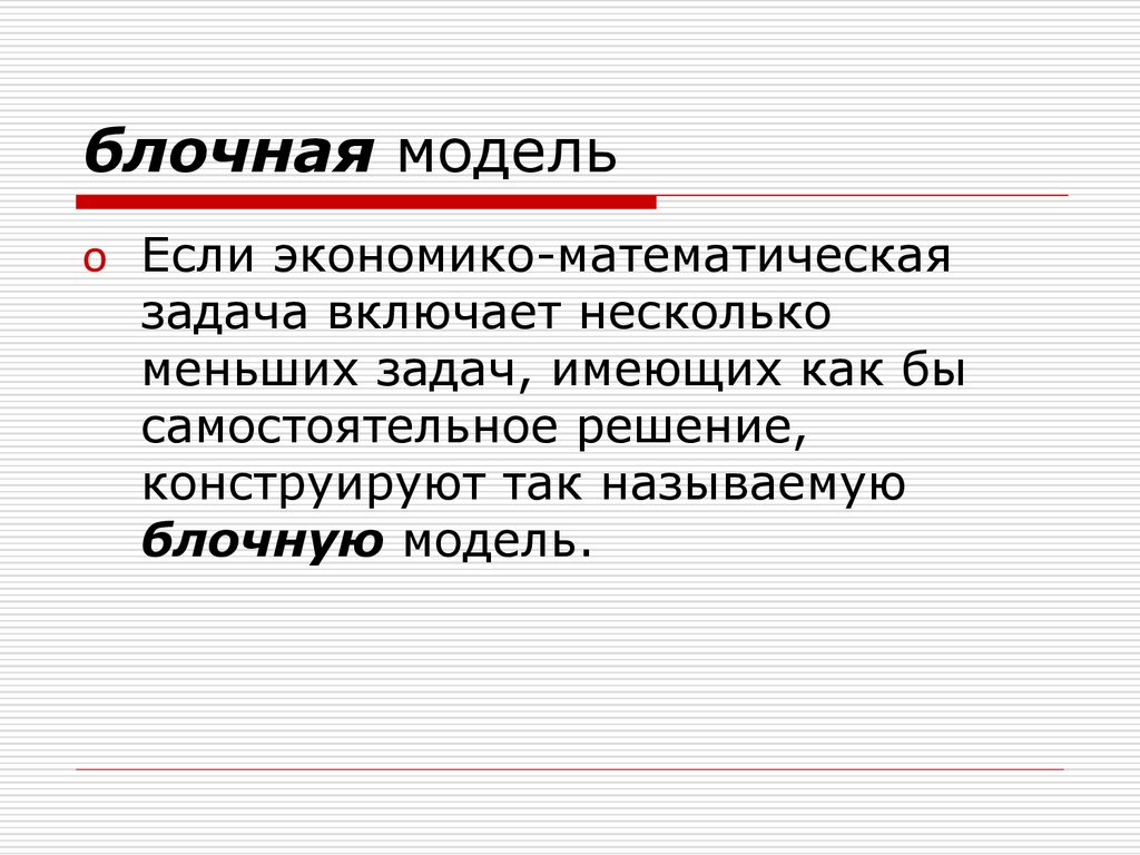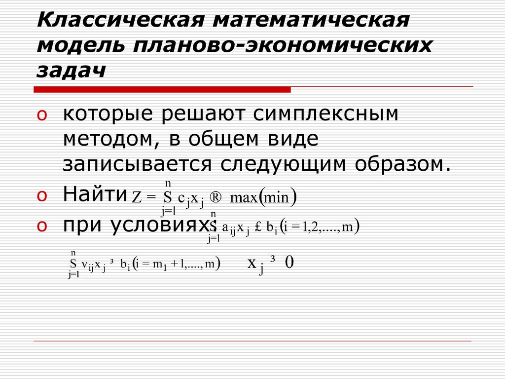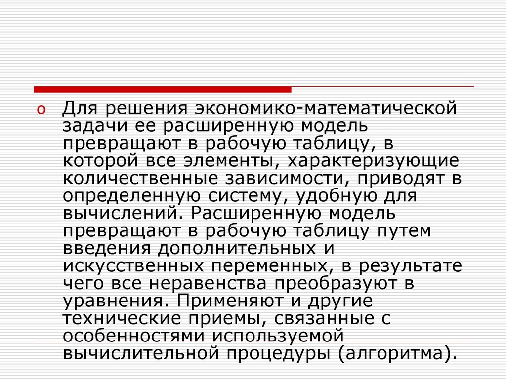 o Для решения экономико-математическойзадачи ее расширенную модель
