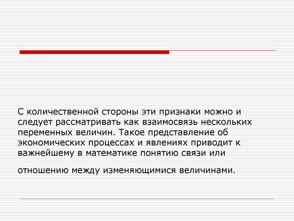 С количественной стороны эти признаки можно иследует рассматривать как взаимосвязь нескольких