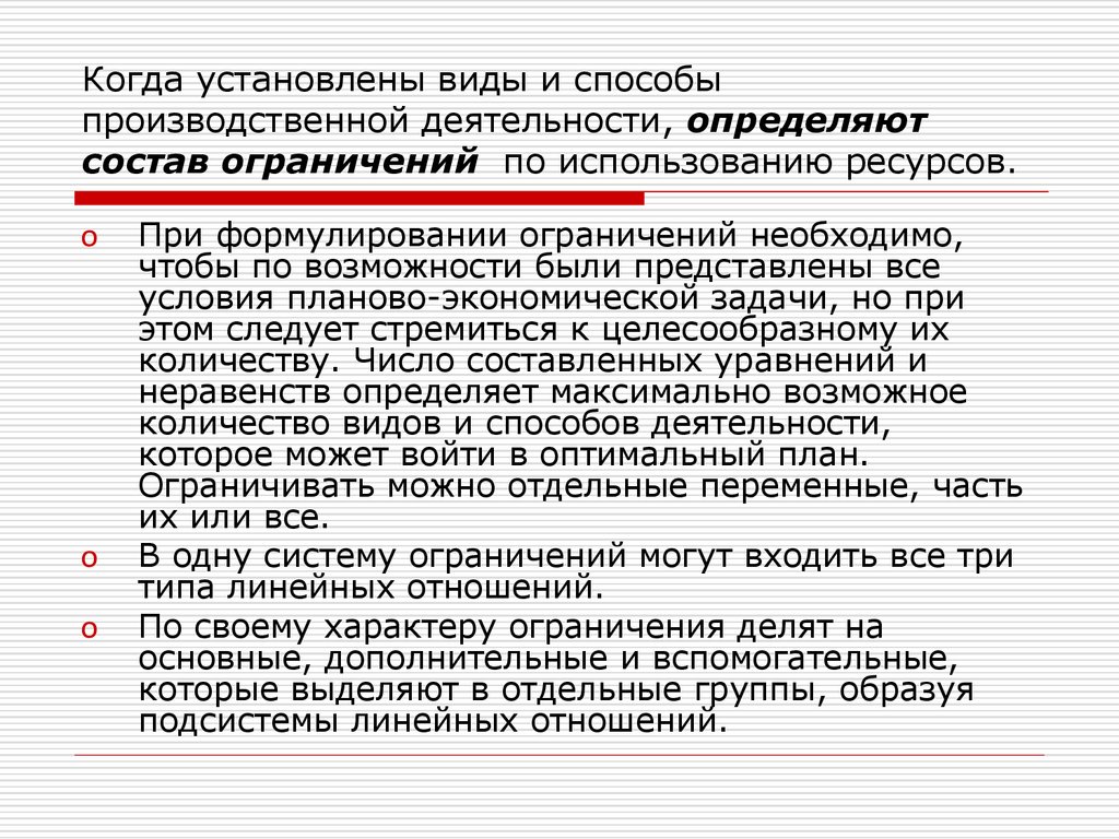 Когда установлены виды и способыпроизводственной деятельности, определяют