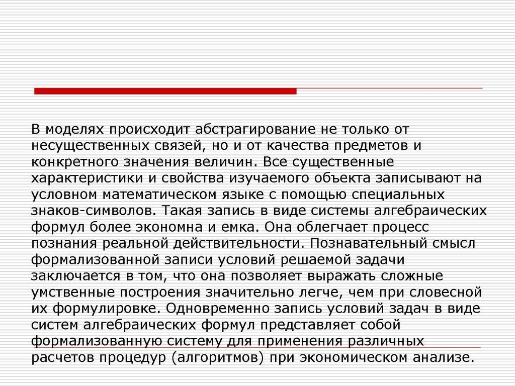 В моделях происходит абстрагирование не только отнесущественных связей, но и от качества предметов и