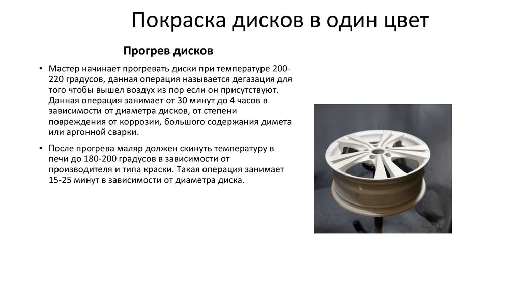 поверхности диска. После чего маляр ставит диск на специальную стойку и обдувает все что