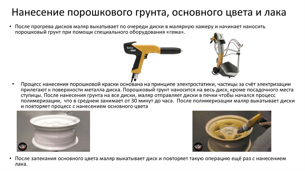 прилегают к поверхности металла диска. Порошковый грунт наносится на весь диск, кроме посадочного места