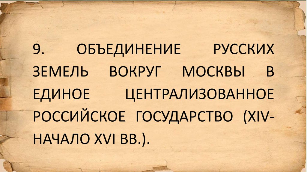 Объединение русских земель вокруг Москвы в единое централизованное Российское государство (XIV - начало XVI вв.)