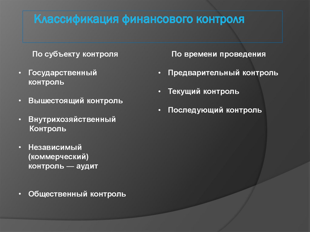 По субъекту контроля• Государственный