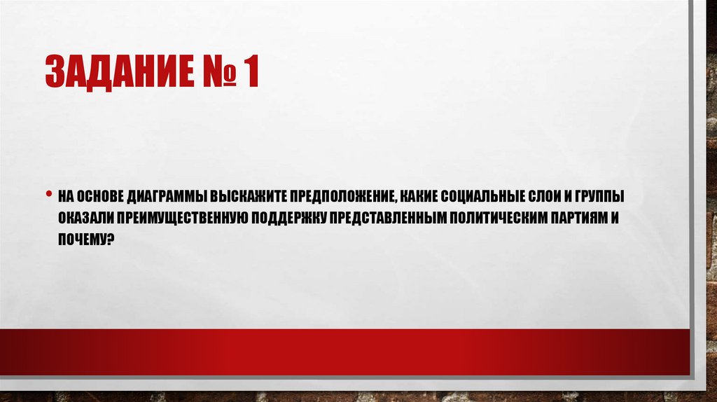 ЗАДАНИЕ № 1• НА ОСНОВЕ ДИАГРАММЫ ВЫСКАЖИТЕ ПРЕДПОЛОЖЕНИЕ, КАКИЕ СОЦИАЛЬНЫЕ СЛОИ И ГРУППЫ