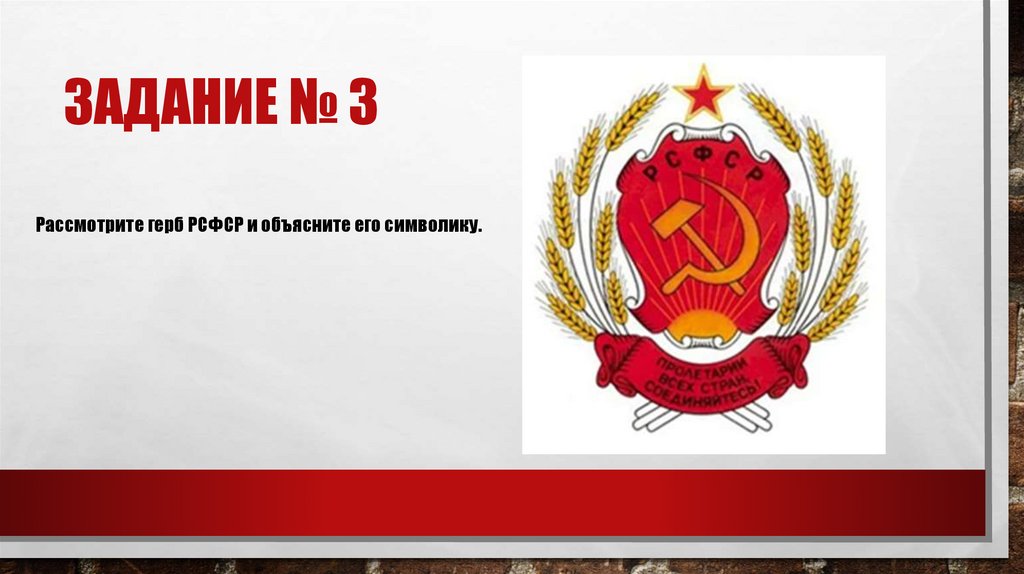 ЗАДАНИЕ № 3Рассмотрите герб РСФСР и объясните его символику.