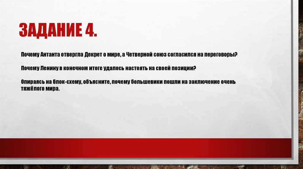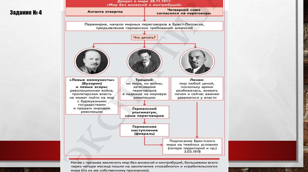 ЗАДАНИЕ 4.Почему Антанта отвергла Декрет о мире, а Четверной союз согласился на переговоры?