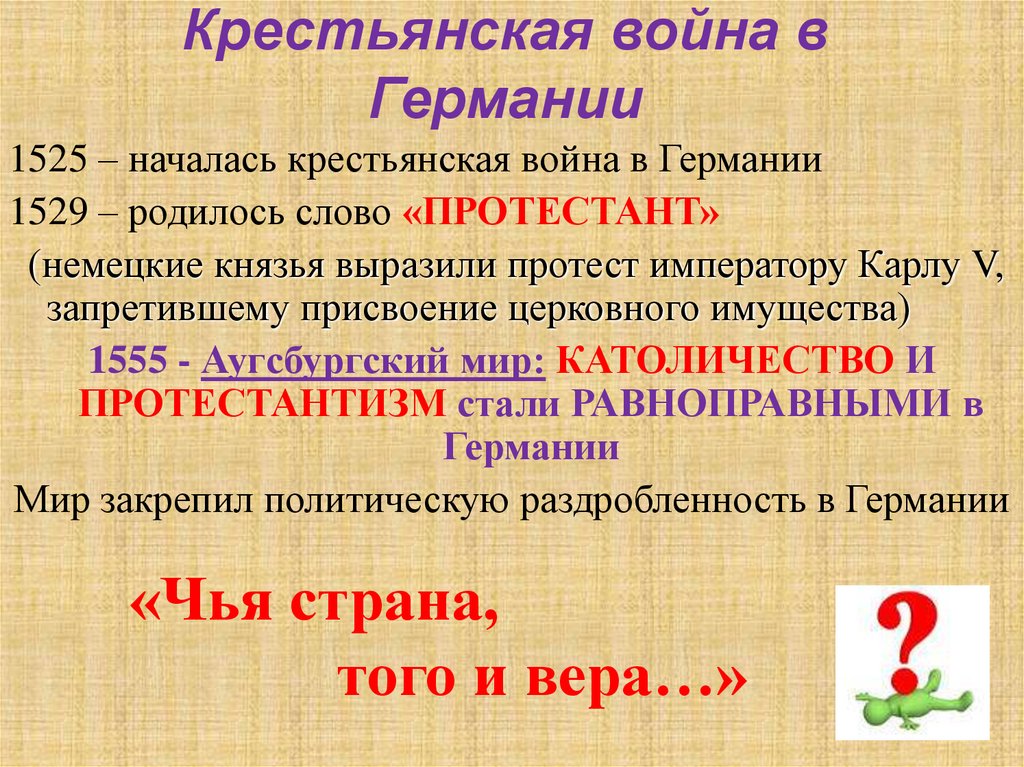 1555 - Аугсбургский мир: КАТОЛИЧЕСТВО И