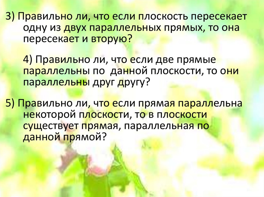 3) Правильно ли, что если плоскость пересекаетодну из двух параллельных прямых, то она