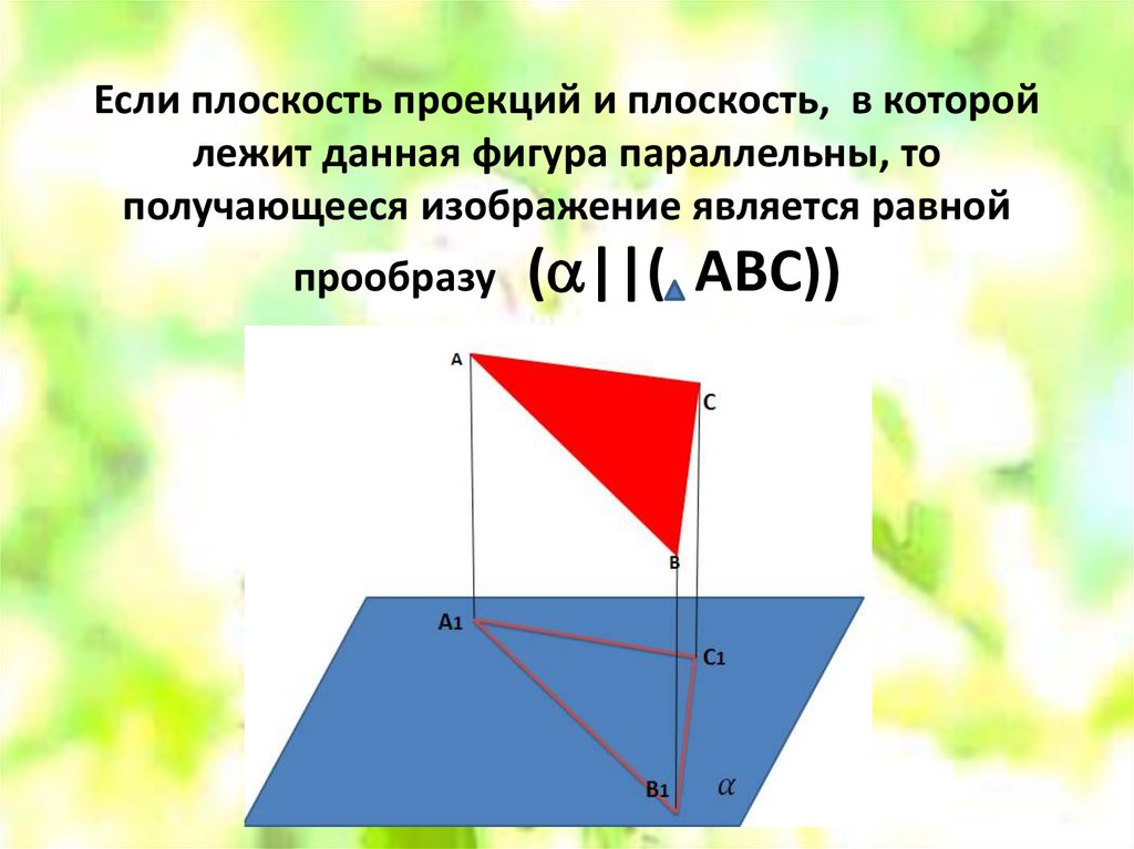 Если плоскость проекций и плоскость, в которойлежит данная фигура параллельны, то