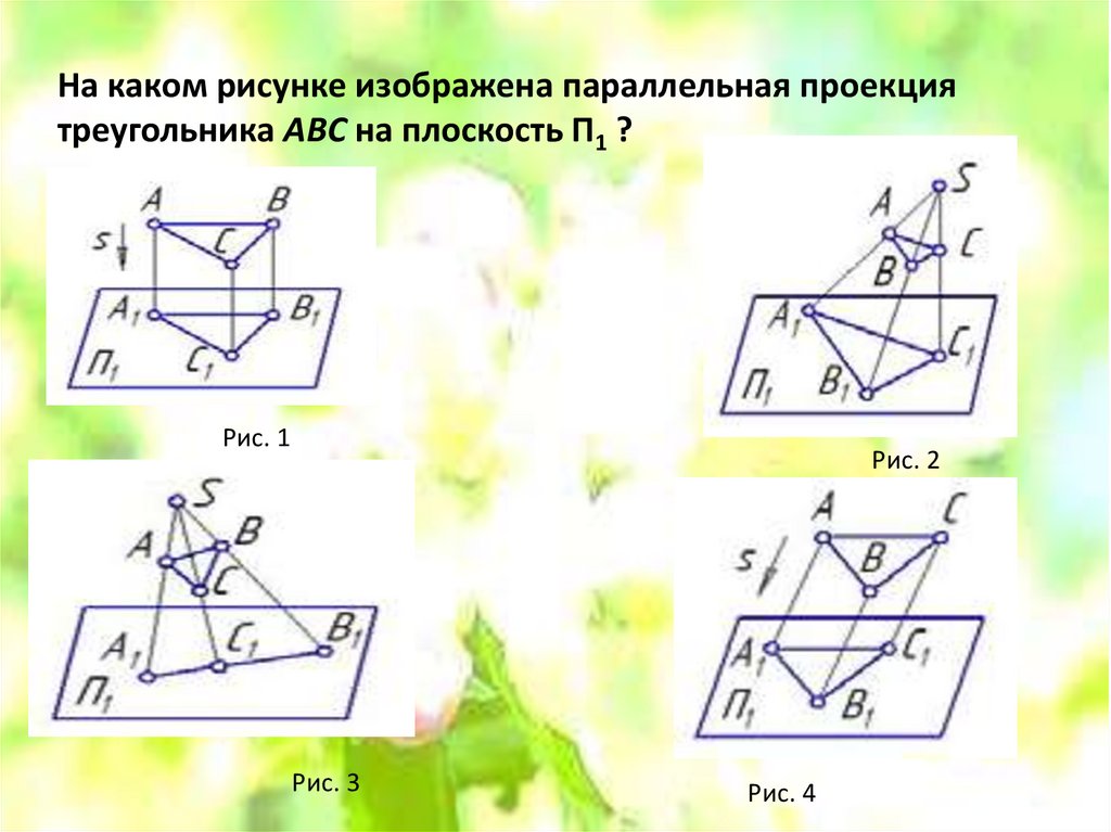 На каком рисунке изображена параллельная проекциятреугольника АВС на плоскость П1 ?
