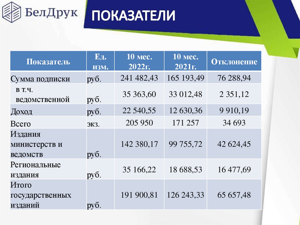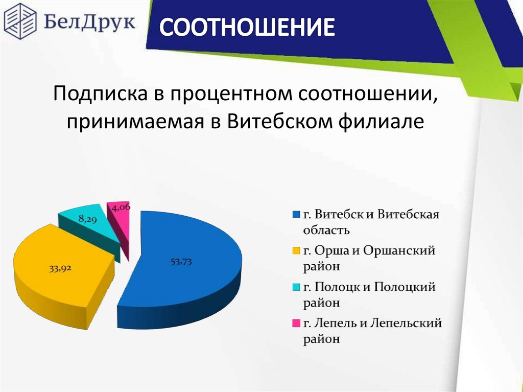 Подписка в процентном соотношении,принимаемая в Витебском филиале