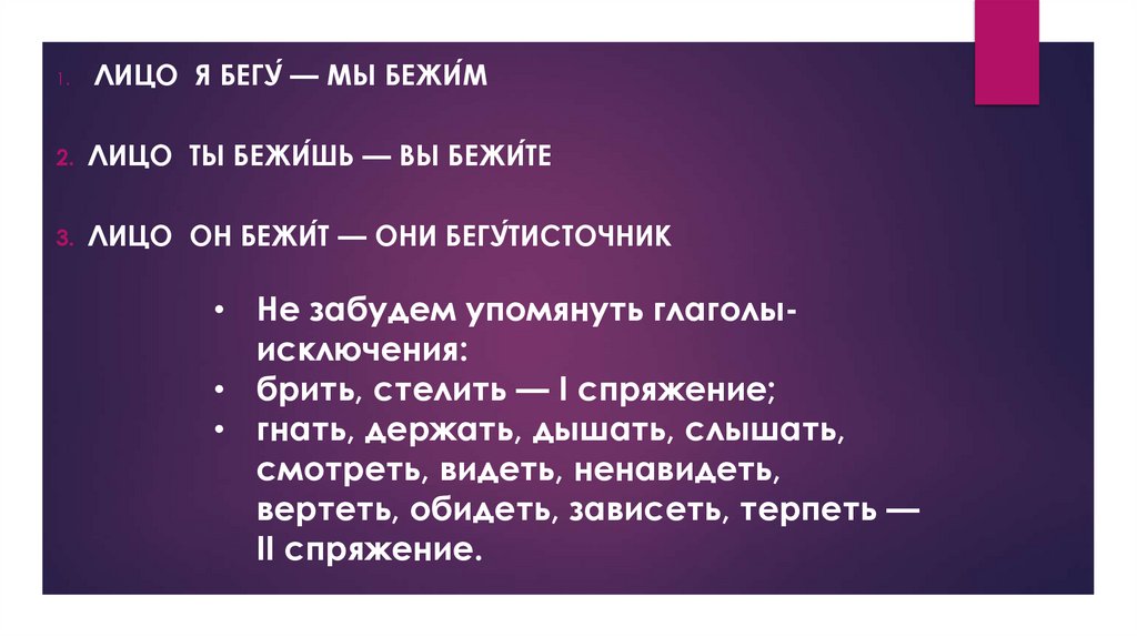 3. ЛИЦО ОН БЕЖИ́Т — ОНИ БЕГУ́ТИСТОЧНИК