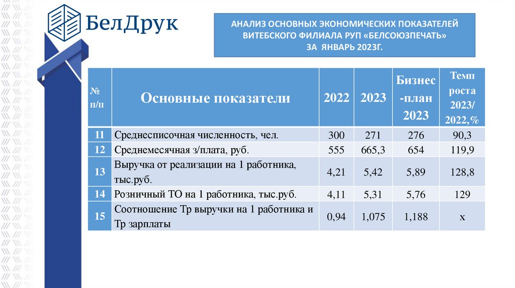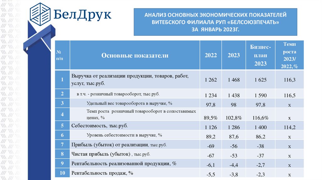 АНАЛИЗ ОСНОВНЫХ ЭКОНОМИЧЕСКИХ ПОКАЗАТЕЛЕЙВИТЕБСКОГО ФИЛИАЛА РУП «БЕЛСОЮЗПЕЧАТЬ»