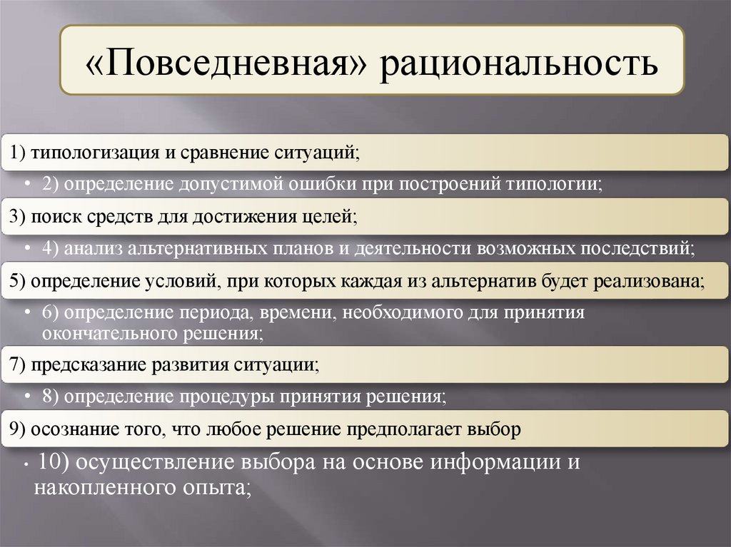 «Повседневная» рациональность1) типологизация и сравнение ситуаций;