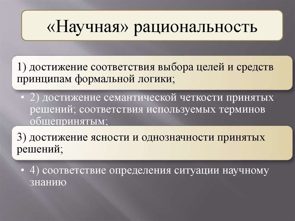 «Научная» рациональность1) достижение соответствия выбора целей и средств