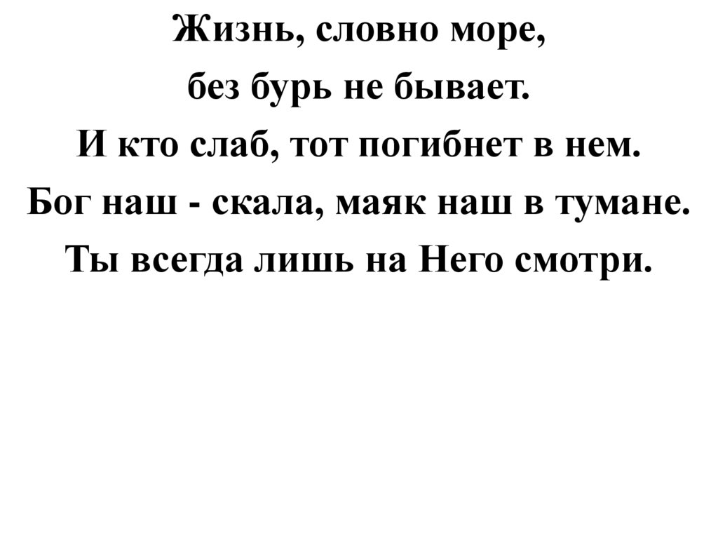 Жизнь, словно море,без бурь не бывает.