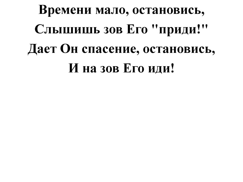 Времени мало, остановись,Слышишь зов Его "приди!"