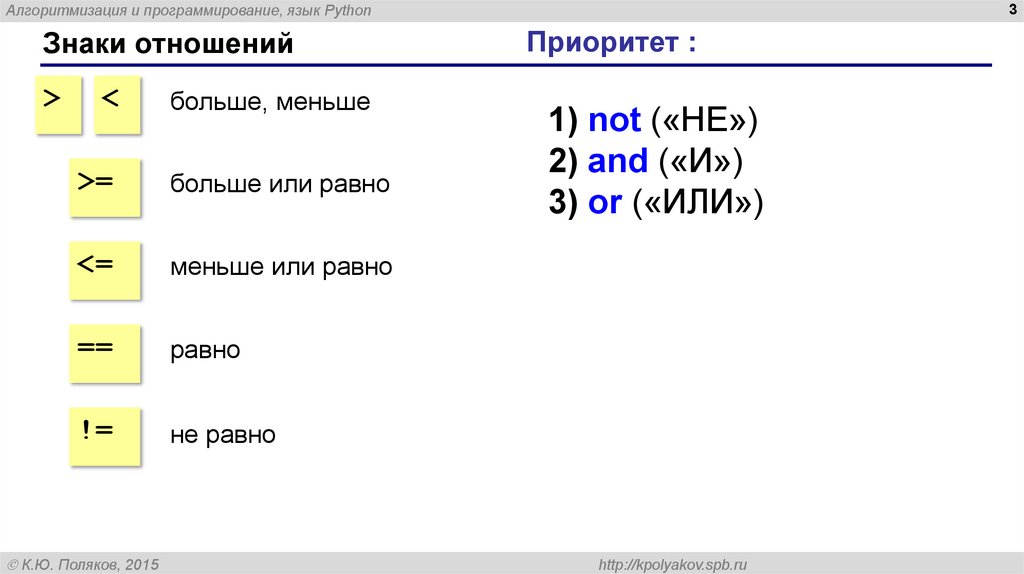 Алгоритмизация и программирование, язык PythonЗнаки отношений