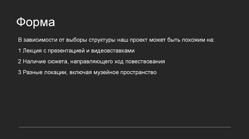 ФормаВ зависимости от выборы структуры наш проект может быть похожим на: