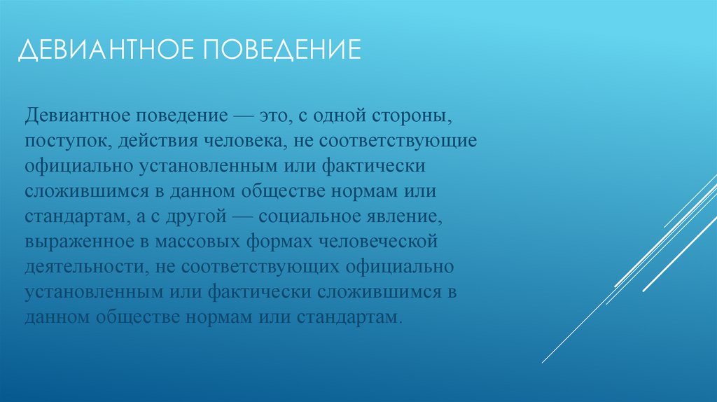 ДЕВИАНТНОЕ ПОВЕДЕНИЕДевиантное поведение — это, с одной стороны,