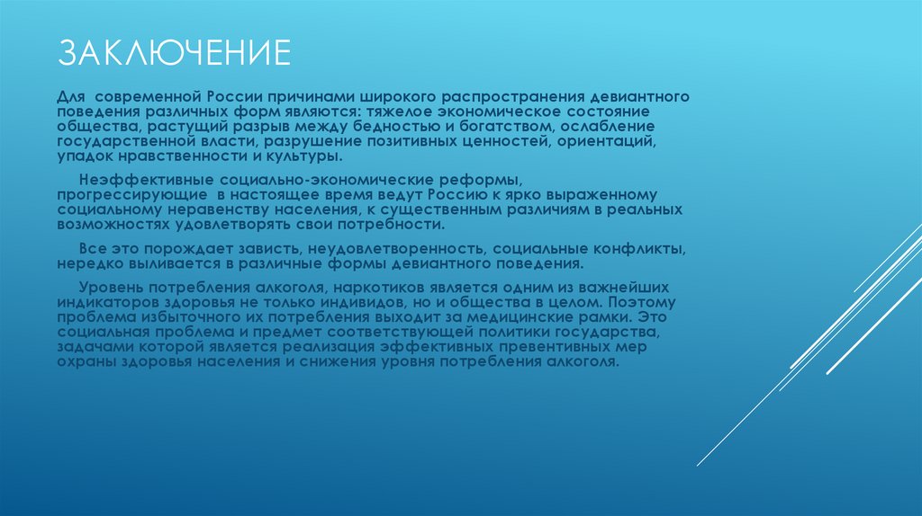 ЗАКЛЮЧЕНИЕДля современной России причинами широкого распространения девиантного